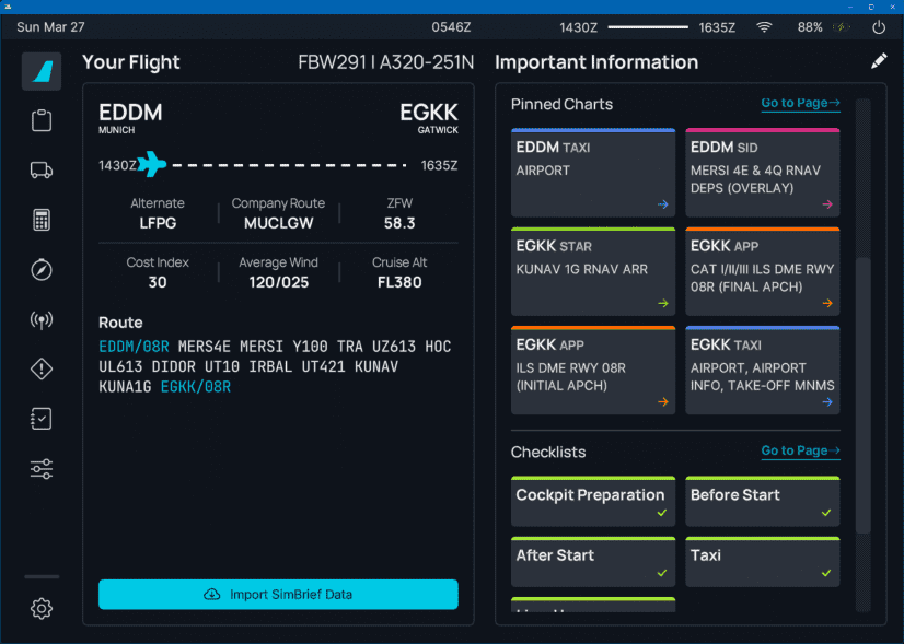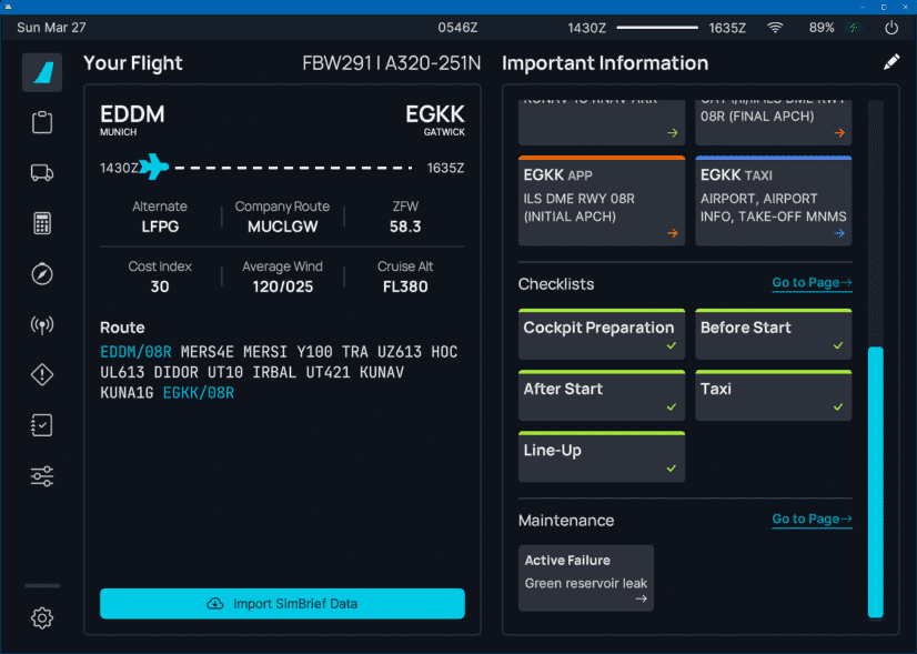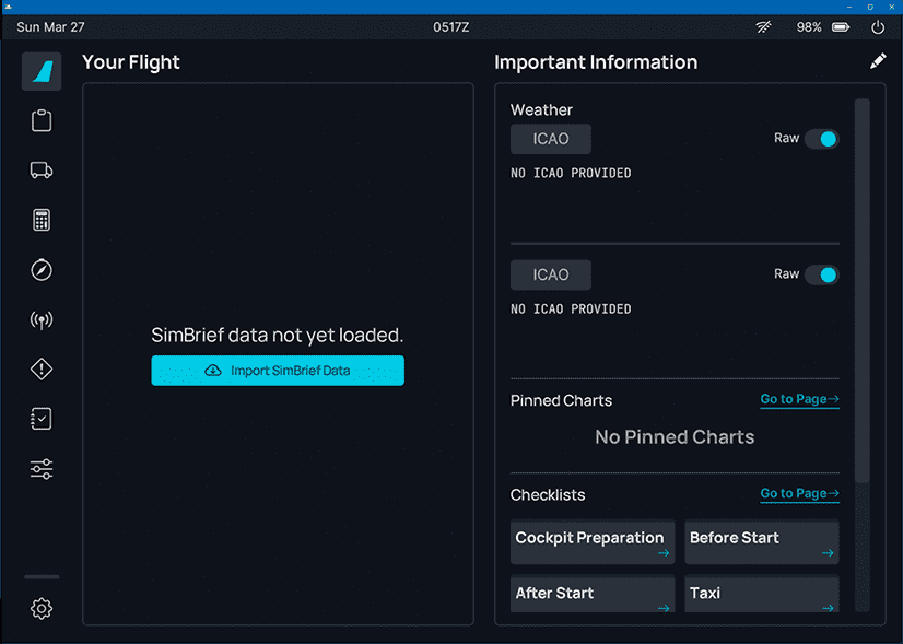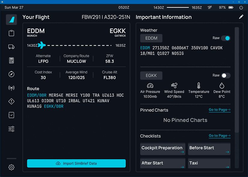 It is also possible to configure the flyPad to automatically load the latest SimBrief data.
