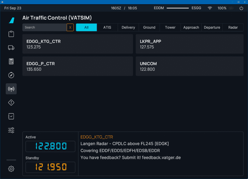 It lists all currently available ATC stations, which can then be activated in the RMP 1 by a single click.