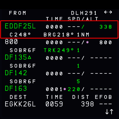 For this, go to the MCDU F-PLN page and select the top most waypoint with the left LSK (line select key).