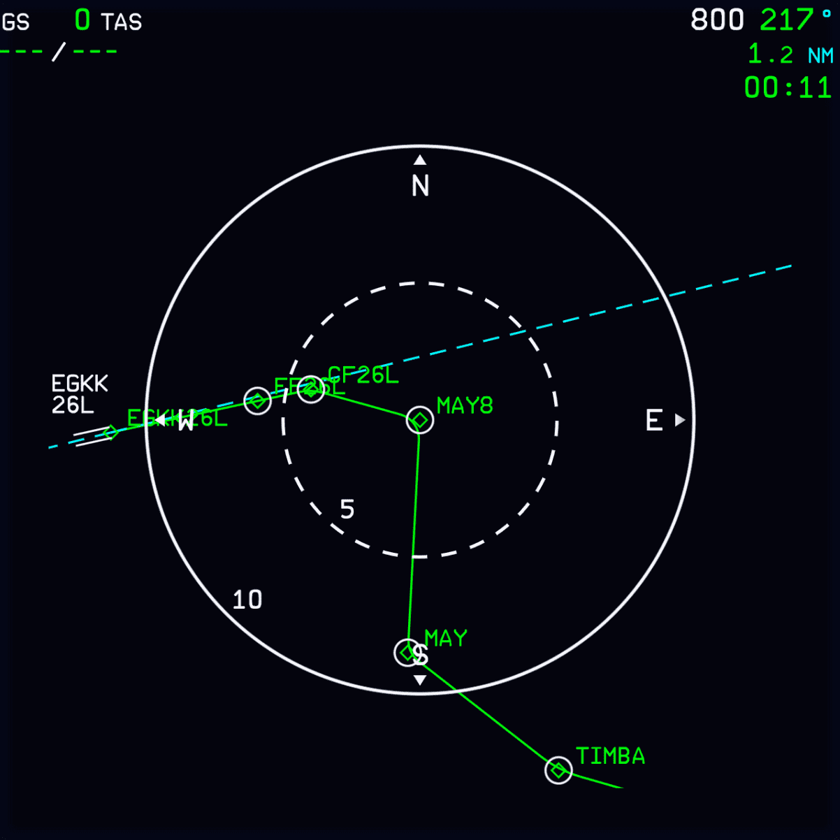 • Radius intercept waypoint at the intersection of a circle with radius 20 around the REF FIX EGKK with the current flight path.