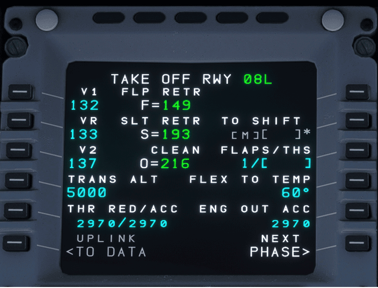 We can also choose to set a FLEX TO TEMP for the flight. The example we are using today is 60 degrees. This will normally be calculated via a pilot's company EFB or other tools, but for the sake of this guide, we will use the value of 60.