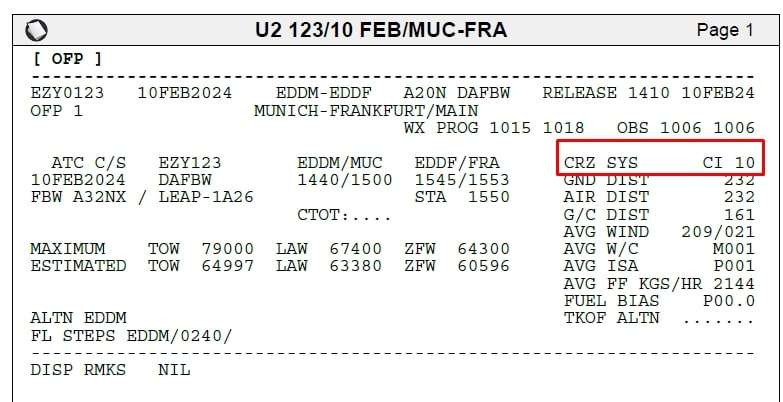 Input the desired cruise flight level in this field. On our OFP, this is listed as 0240 or FL240.