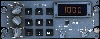 To enter your assigned code find the ATC/TCAS Panel on the bottom right portion of the lower pedestal. It will look like this: