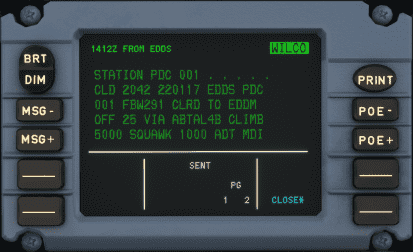 The Datalink Ctl and Display Unit (DCDU) is used by the pilots to communicate with Air Traffic Control (ATC) by the means of text messages instead of voice radio.