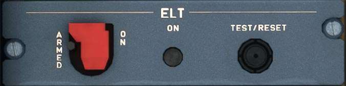 The Emergency Locator Transmitter is mounted in the back of the aircraft, and is designed to be triggered upon impact or may be manually activated using the remote switch and control panel indicator in the cockpit.