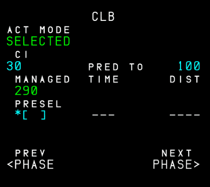 • As long as the climb phase is not active, this field displays PRESEL. A preselected speed can be entered.