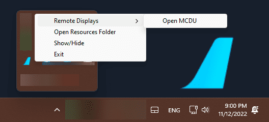 You can directly open the Remote MCDU from the system tray by selecting "Open MCDU" in the context menu when using Right Click with your mouse.