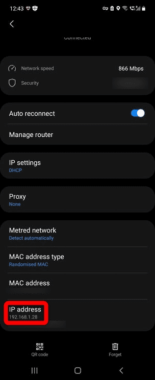 Your device should typically have an IP Address starting with the same three sets of numbers (starting with 192.168.1 in this case). This is a good way to quickly verify that your remote device is even on the same network.